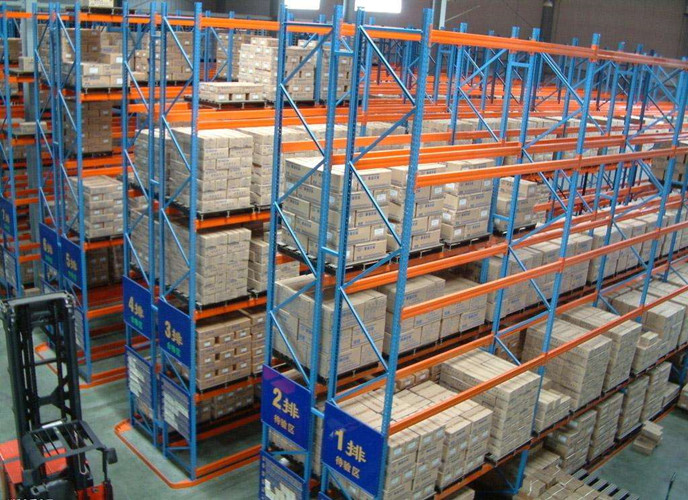 立体货架,高位货架,重型货架,都是仓库中仓储货架的一种,是用托盘和叉车放货的,货物放到托盘上,