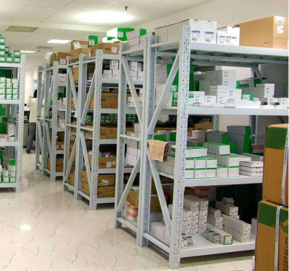 轻型货架,有立柱,横梁,层板组成,每层的载重在100-200公斤,高度一般在2米,