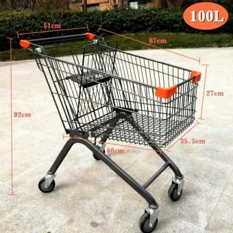 100L超市购物车,喷黑钻超市购物车,济南德嘉批发定制。