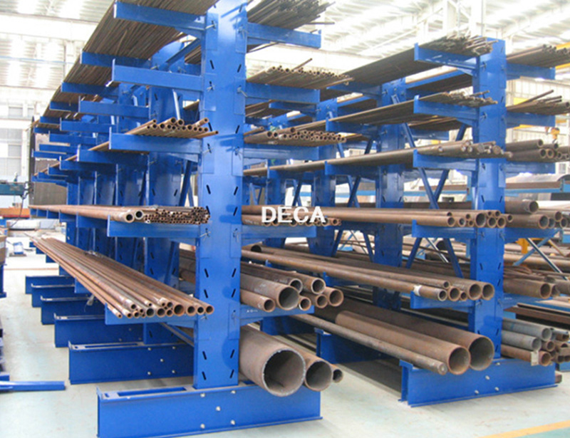悬臂式货架由装有悬臂的立柱组装而成。根据济南仓储货架厂德嘉的总结,悬臂式货架主要存放长杆材料、环材或其他不规则材料,其主要优势体现在以下4个方面: