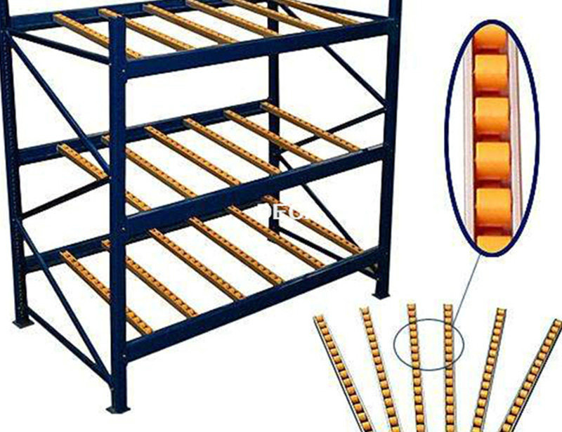 流利式货架描述:流利式货架又称滑移式货架,由立柱组、前后横梁、流利条等组成。货物通过滚道从配送端运送到取货端,货物靠重力自动下滑,流利式货架可以实现“先进先出”操作,流利式货架使用成本低,存储速度快,密度高。流利式货架每层前后横梁之间设置镀锌或铝合金滚丝条,并按一定坡度放置。