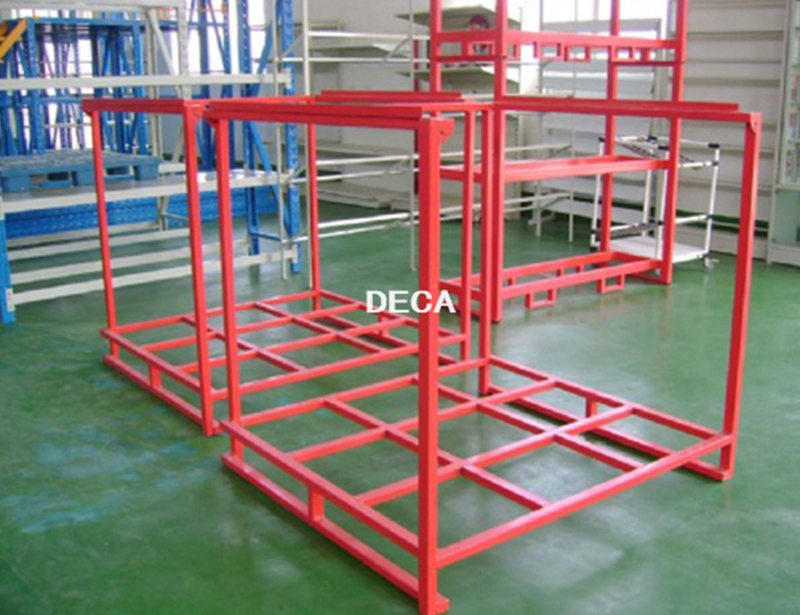 堆垛架,可相互堆3到4层,形成立体存储模式,无需借助货架、仓储笼和托盘等设备,适合用在租赁仓库、低矮的老式仓库或车间暂存区等不适合投资货架的区域。